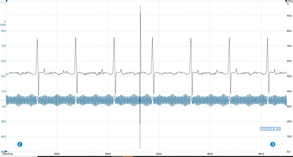 En dit is nou precies waarom meten zo belangrijk is. Stel dat je alleen maar onderdelen vervangt, was de krukassensor nu dan uitgesloten geweest? Wat is dan de volgende stap? De ECU? nieuwe bedrading trekken? Het einde raakt zoek op deze manier. Na even wat googlen zien we dat een plaatselijke autosloop nog een originele sensor heeft liggen. Dit is prima om in ieder geval even te proberen. We monteren de sensor en gaan rijden maar dan begint er toch weer wat te knipperen? Wij worden ook wel is moedeloos maar weten de kalmte toch te bewaren en weer de beelden te analyseren. Wanneer we dit doen zijn we ergens opgelucht, ookal knippert het lampje weer. Er vinden geen afwijkingen in het signaal meer plaats.